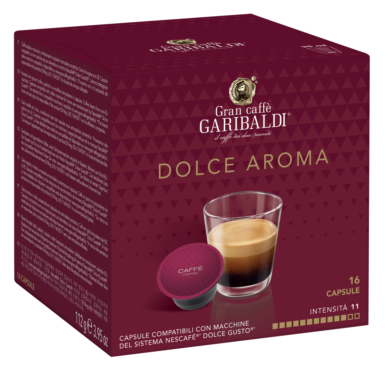 Iepakojumā ir 16 kapsulas, kas paredzētas NESCAFÉ® Dolce Gusto® kapsulu kafijas automātiem, lai pagatavotu 16 tasītes GARIBALDI Dolce Aroma kafijas. Kafija ir iepakota īpašās hermētiskās kapsulās. Tādējādi kafija saglabā savas raksturīgās īpašības pat pēc daudziem mēnešiem.