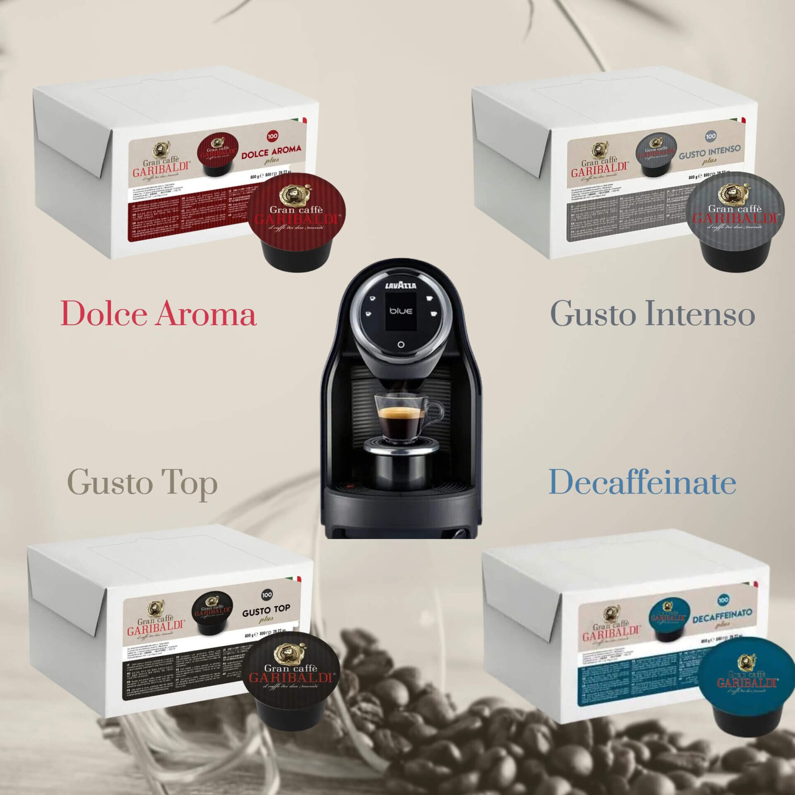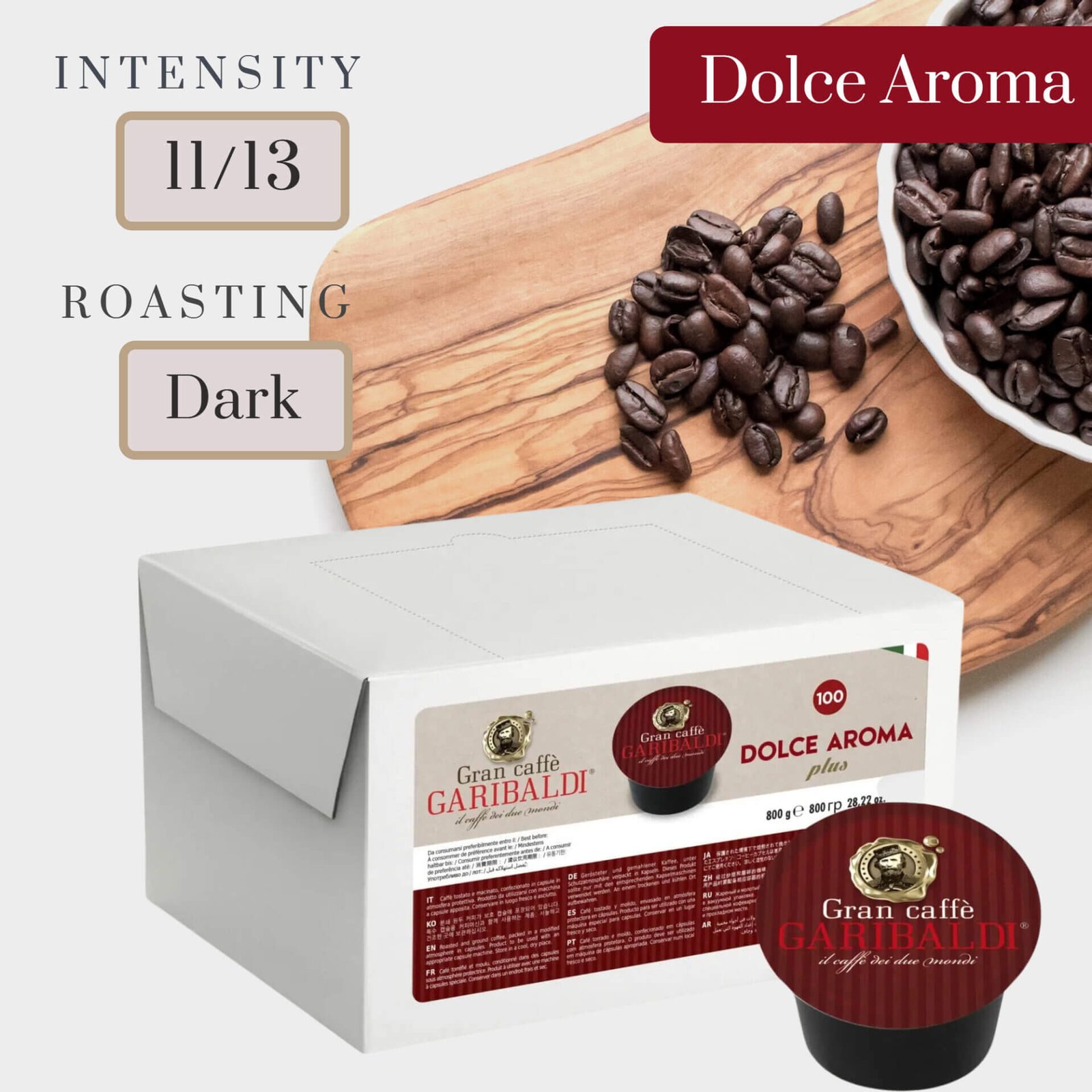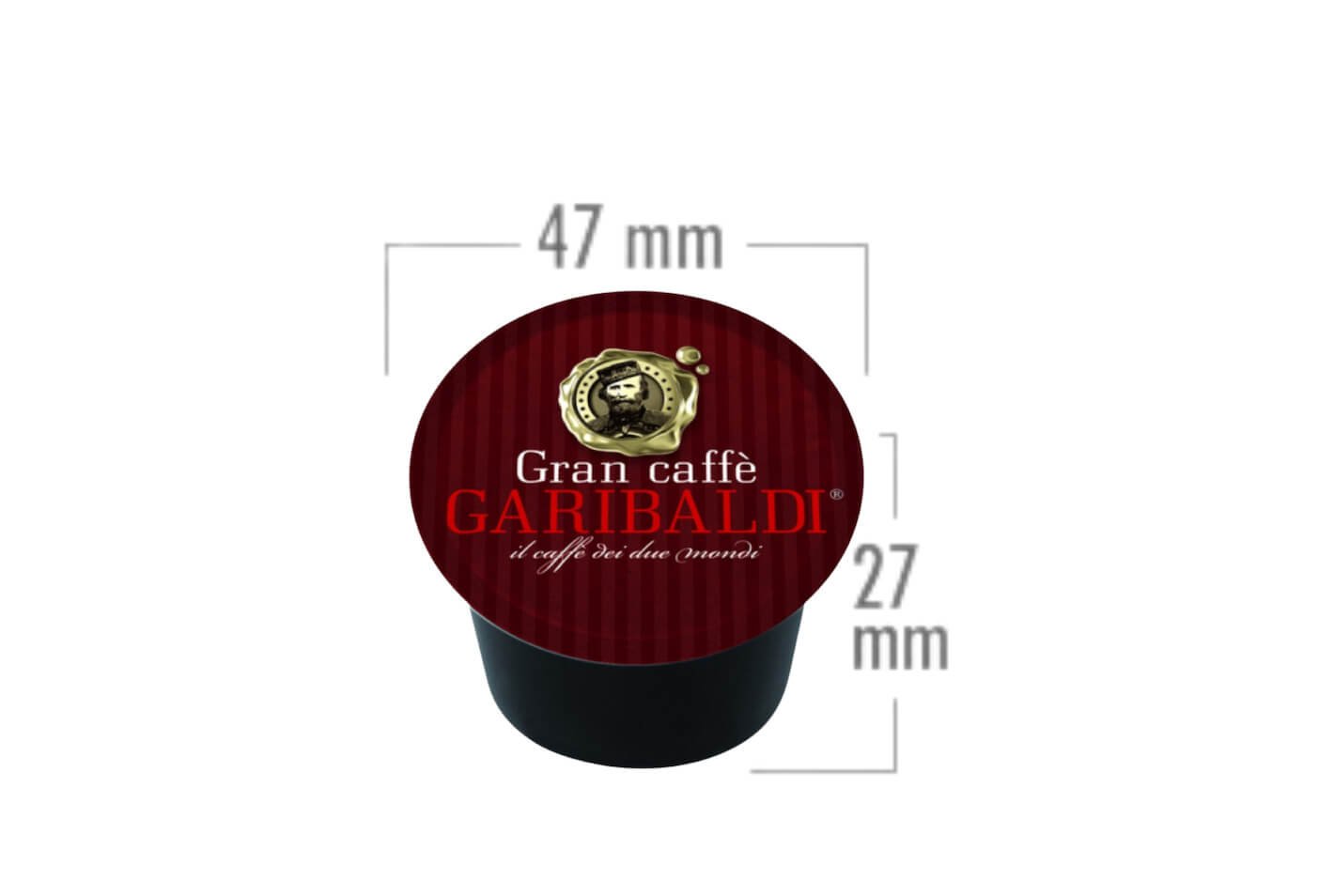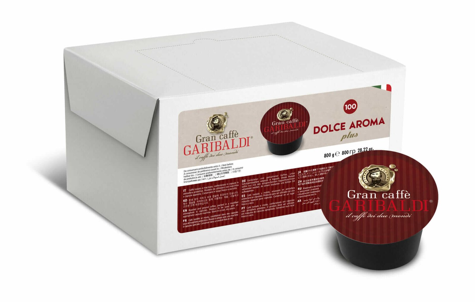 Kastītē ir 100 kapsulas, kas paredzētas Lavazza Blue® kapsulu kafijas automātiem, lai pagatavotu 100 tasītes GARIBALDI Dolce Aroma kafijas.