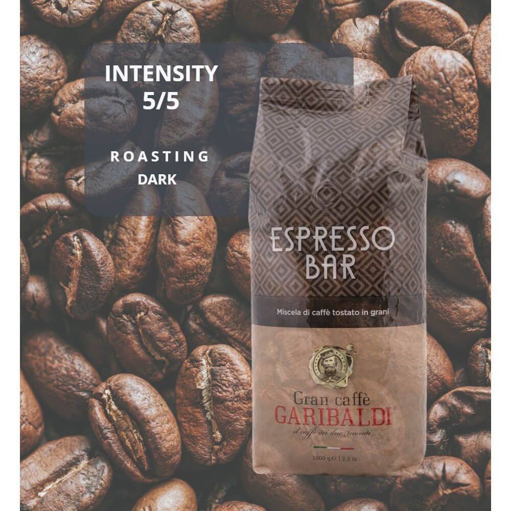 GARIBALDI Espresso Bar kafijas pupiņas - stipras, biezas un biezas kafijas pagatavošanai. Īpašais grauzdēšanas process piešķir kafijai neticami dziļu aromātu, kas atgādina grauzdiņus un cepumus.